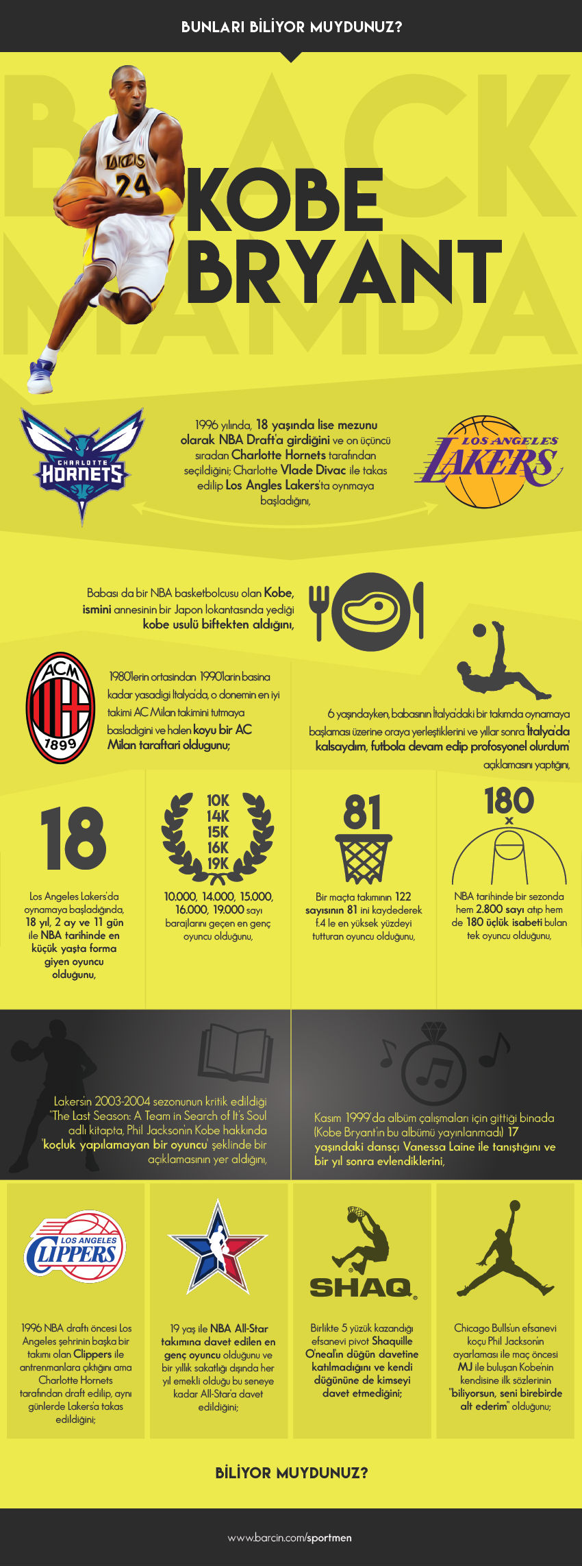 Kobe Bryant, özellikle Los Angeles Lakers dendiğinde akla gelen, NBA tarihinin en değerli oyuncularından biri. Black Mamba lakaplı 38 yaşındaki başarılı sporcu, jübilesiyle basketbola veda etti. 24 numaralı efsanevi formasıyla son kez sahaya çıkan Bryant, yirmi yıldır giydiği formayı son kez terletti. Taraftarların takımda en sevdiği oyuncu olan basketbolcu, 1566. maçının ardından potalara müthiş bir performansla veda etti.
