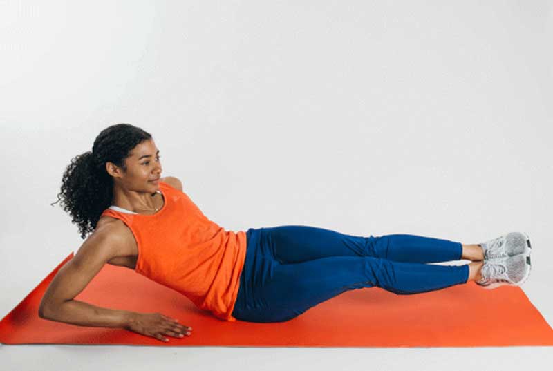 Ayaklarınızı omuz genişliğinizde açıp yukarı bakacak şekilde tutun ve dizlerinizi bükün. Sol bacağınızı düz bir şekilde dışarıya doğru uzatın ve sonra kalçanızı matla olan bağlantısından kurtarmak için sağ topuğunuzdan destek alın. Dizlerinizi aynı hizada tutmaya dikkat ederek, ellerinizin matla temasından aldığınız desteği koruyun. Kendi direnişinizi yarattığınız bu hareketi, aynı şekilde sağ bacağınızla deneyin.