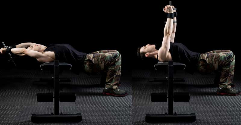 Göğüs kafesinizin üst bölgesinin ön plana çıkmasına yarayan harekettir. Tek dumbell ile çalışılır. Çalışma sephasına bench press hareketindeki gibi düz bir şekilde uzanılır. İki elinizin işaret ve baş parmaklarını birleştirin. Birleştirdiğiniz noktada oluşan alana ağırlık olarak kullanacağınız dumbellı alın. Dumbell fly’da olduğu gibi bu dirsekler hafif bükük olmalıdır. Hareket tamamlanana kadar simetrinin bozulmamasına dikkat edilmelidir. Ağırlık göğüs hizanızdan başlayarak başınızın arkasına omuz hizasına kadar götürün ve sonra tekrar başlangıç noktasına geri getirin. Ağırlığı arkaya götürürken kaslarınızın gerildiğini hissedeceksiniz. Arkaya götürdüğünüz ağırlığı tekrar göğüs hizasına getirirken gerilen kaslarınızın sıkışmasını hissediyorsanız hareket doğru yapıyorsunuz demektir.