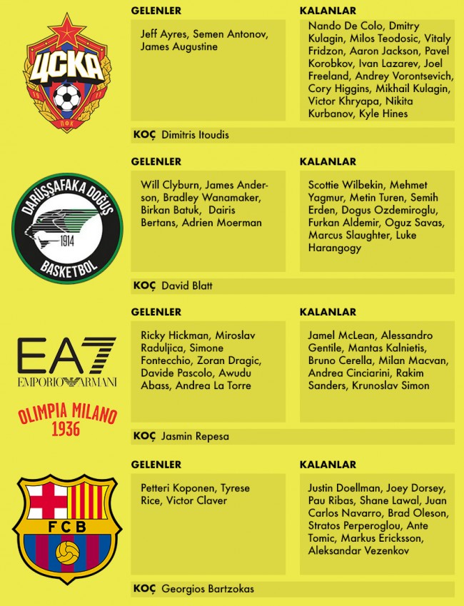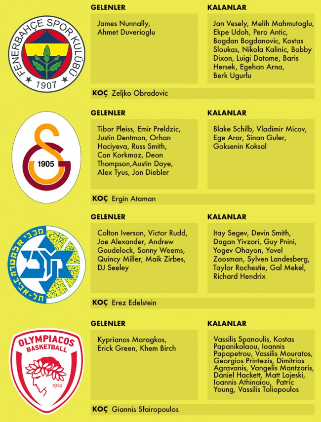 Tıpkı geçtiğimiz sezonda olduğu gibi 2016-17 THY Euroleague sezonunda da 4 Türk takımı bu büyük mücadelede boy gösterecek: Son iki yılın Final-Four üyesi ve geçen yılın finalisti Fenerbahçe, yeniden yapılanan kadrosuyla Anadolu Efes, gösterişli kadrosuyla Final-Four iddiasıyla yola çıkan Darüşşafaka Doğuş ve bir yıl aradan sonra Euroleague’e son Eurocup şampiyonu sıfatıyla geri dönen Galatasaray Odeabank. Dörtlü Final’e İstanbul’un ev sahipliği yapacağı bir sezonda ligdeki 16 takımdan 4’ünün Türkiye topraklarından geliyor olması ve 4 takımımızın da Final-Four’u hedeflemesi hepimizi heyecanlandırıyor. En büyük dileğimiz 19 Mayıs günü geldiğinde en az bir Türk takımını parke zeminde görebilmek.