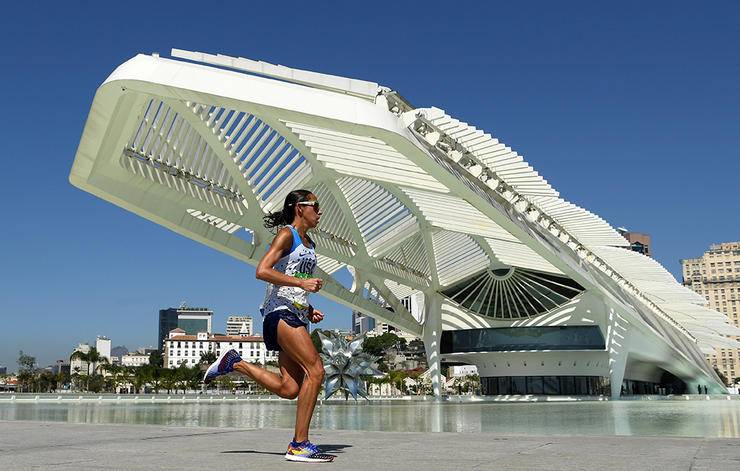 Amerika adına yarışan Desiree Linden, maratonun son bölümüne yaklaştığı Rio’nun “Geleceğin Müzesi”ni geçerken.