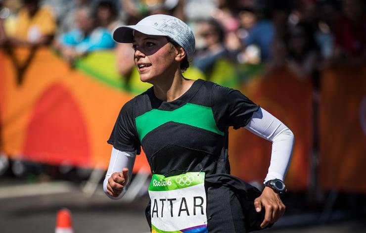 Batafogo Plajı’ndaki yuvarlağı dönen Sarah Attar. 3:16:11 bitirme süresiyle Suudi Arabistan adına olimpik maratonda yarışan ilk kadın oldu.