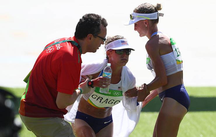 Şubat’ta yapılan Amerika Olimpiyat seçmelerinin bitiş çizgisinde sıvı kaybı yaşayan Shalane Flanagan’a yardım eden Amy Cragg, bu sefer aynı yardımı Rio’da Flanagan tarafından gördü.
