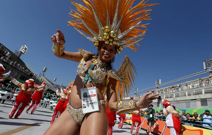 Koşucular parkurda ter dökerken, maratonun başlangıç ve bitiş noktası olan Sambodromo’da bir dans partisi veriliyordu.