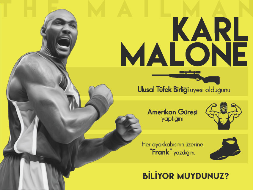 malone-infografik-01Utah Jazz tarihinin en skorer oyuncusu, “Postacı” lakaplı Karl Malone, NBA tarihine damgasını vurmuş önemli oyunculardan biri. 1985-2003 yılları arasında Utah formasını taşıyan ve NBA tarihinin Kareem Abdul Jabbar’ın ardından toplam 36,928 sayı ile en skorer ikinci oyuncusu olan Malone, 2010 senesi itibarı ile Basketbol Şöhretler Kulübü’ne katıldı.