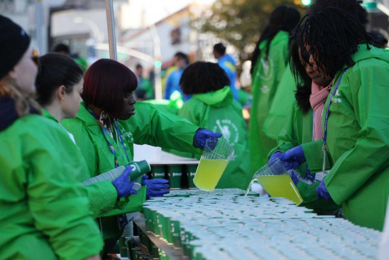 Gönüllüler sıvı ihtiyacını karşılamak için en az koşanlar kadar efor sarfetti.