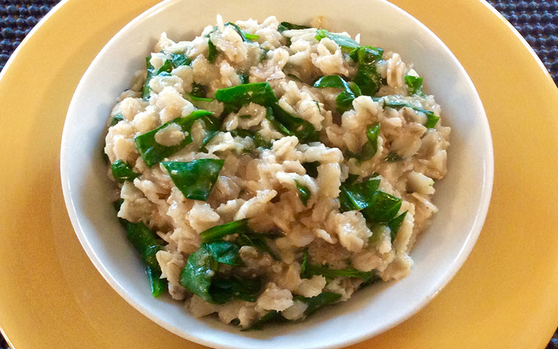 Mevsimi yaklaşıyor! Ispanağın faydalarını Temel Reis’le öğrenenler aramızda mı? 2 bardak kaynamış suya bir bardak yulaf ezmesi ilave ediyoruz. Orta ısıda yaklaşık beş dakika pişen yulaf ezmesi orta yumuşaklığa eriştiğinde ıspanaklarla buluşturuyoruz ve beş dakika daha pişirmeye devam ediyoruz. Biraz tuz ve biberle karışımınıza farklı bir lezzet katabilirsiniz. Şimdi sosumuzu hazırlamaya başlayabiliriz. Biraz zeytinyağı döktüğümüz tencereye kıymayla taze soğanı atın ve önceden hazırlamış olduğunuz domates sosuyla bu karışımı birleştirin. Yulaf ezmeli ıspanakların üzerine önce kıymalı sosu sonra sarımsaklı yoğurdu dökerek servis yapıyoruz.